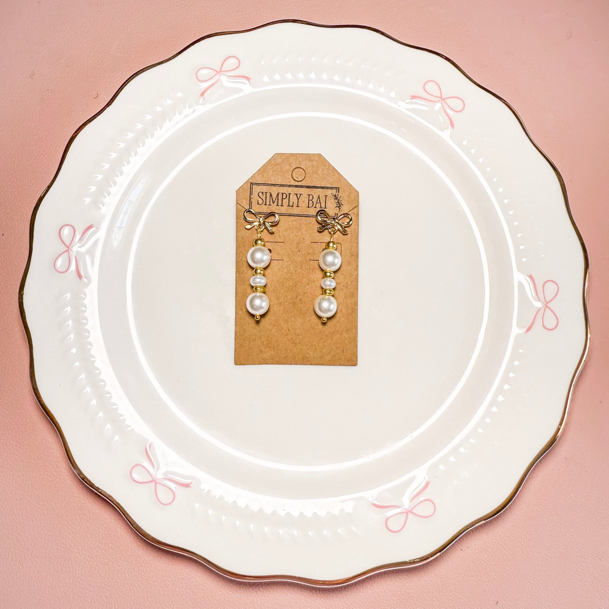 Elegant, timeless, and effortlessly feminine, the Maryann Pearl Bow Earrings are designed to elevate any outfit with classic charm. Featuring soft white pearl beads paired with delicate gold bow accents, these neutral drop earrings strike the perfect balance between vintage-inspired beauty and modern simplicity.